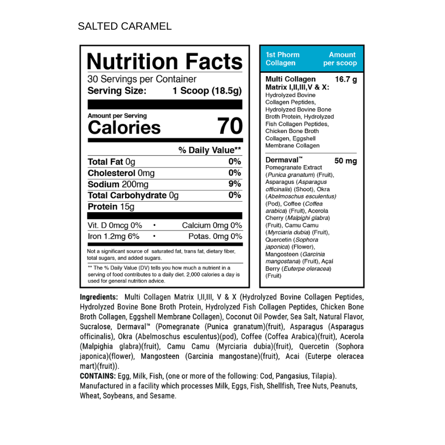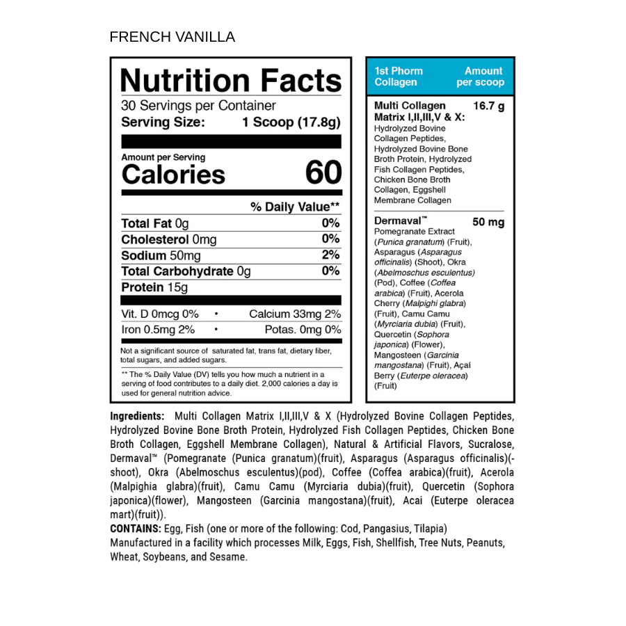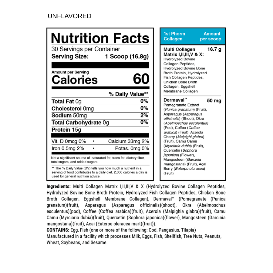 1st Phorm Collagen with Dermaval™ is formulated using five diverse types of hydrolyzed collagen peptides, providing a broad amino acid profile to help meet the body's collagen needs.